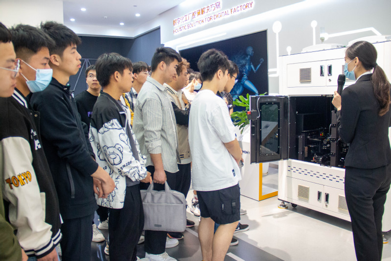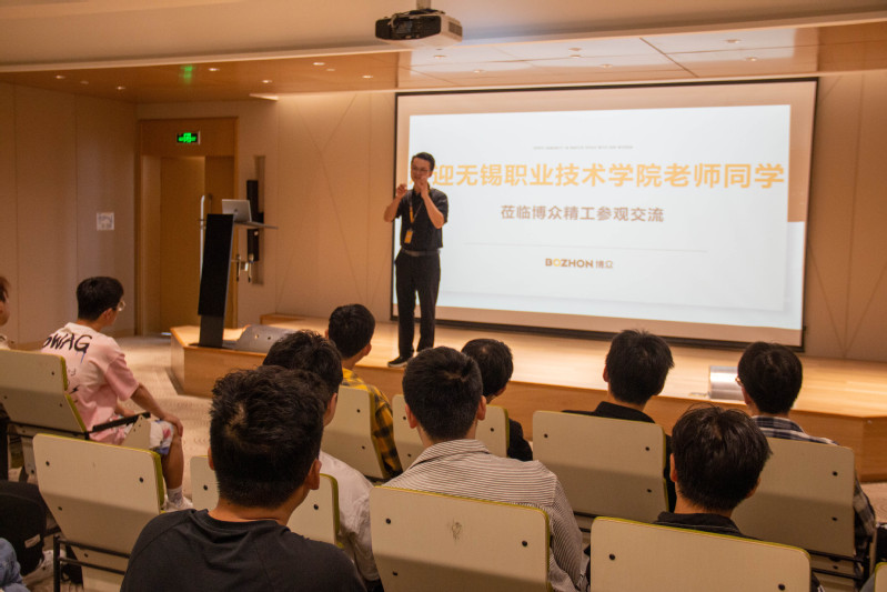 博众精工是江苏著名的智能制造企业,专注于非标自动化的解决方案,目前主营业务还涉及新能源汽车、半导体封装等高端制造产业。本次师生拓访受到了企业人事经理袁野的热情接待。师生一行参观了博众科技馆、博众员工生活区,讲解员将企业发展历程、价值文化与核心业务进行了细致的介绍。袁野经理还向学生们毫无保留地分享了资深人力资源工作者对职业院校毕业生的求职建议,耐心解答学生的求职困惑,并欢迎无锡职业技术学院学子进入博众精工实习实践。
