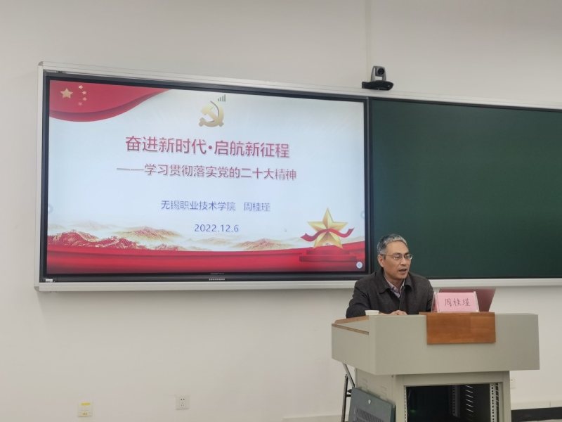 报告内涵丰富、立意深远,主要从 “深刻认识党的二十大的重大意义”“准确把握党的二十大报告的精髓要义”和“贯彻落实党的二十大精神,推进职业教育高质量发展”三个方面进行解读。周校长结合学校发展的实际情况及在多年办学中形成的无锡职院方案,详细向教师们阐述了党的二十大精神对于职业教育高质量发展的引领作用。与会同志纷纷表示,报告视野开阔、深入浅出、分析透彻,既有政策理论高度,又紧密联系实际,深受教育,同时更加鼓足了立足岗位、启航新征程的干劲。