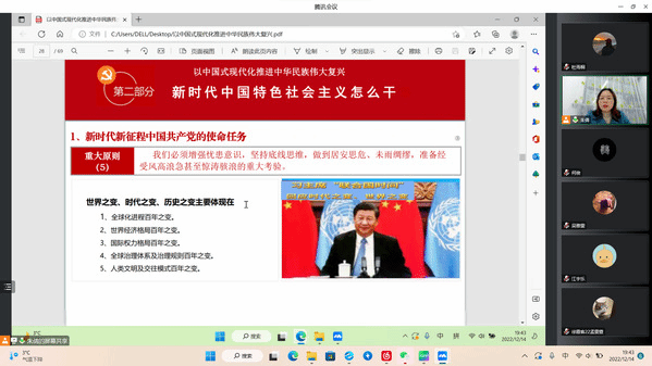 朱倩从深刻把握好党的性质和宗旨入手,带领同学们研读了二十大新修订党章中的原文原句,随后,朱倩以新时代中国特色社会主义怎么看、新时代中国特色社会主义怎么干、新时代党的建设新的伟大工程怎么建三个清晰的逻辑层次,将同学们对中国式现代化的内涵及目标任务的认识引向深入。