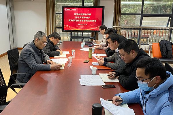 根据学校党委《关于认真开好党史学习教育专题民主生活会的通知》精神,开源创新创业学院党总支于1月21日下午在部门202会议室召开党史学习教育专题民主生活会。校党委副书记周桂瑾莅临指导,党委组织部相关负责人到会督导。开源创新创业学院党总支领导班子出席会议,教研室、科室负责人列席会议,会议由党总支副书记曹小兵主持。