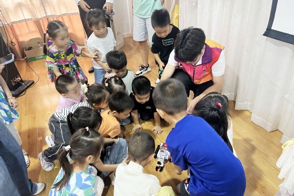 每年的九月第三个公休日是“全国科普日”活动集中开展的时间。为了积极推动全民科学素养提升,助力科技自立自强,9月26日,开源创新创业学院与科技协会、机器人协会的师生志愿者们,将智能机器人、微型机械臂、3D打印机等对孩子们来说充满吸引力的科技产品带到了保利实验幼儿园,开展了一场别开生面的“智趣富童心 科技促自强”科普教育活动。