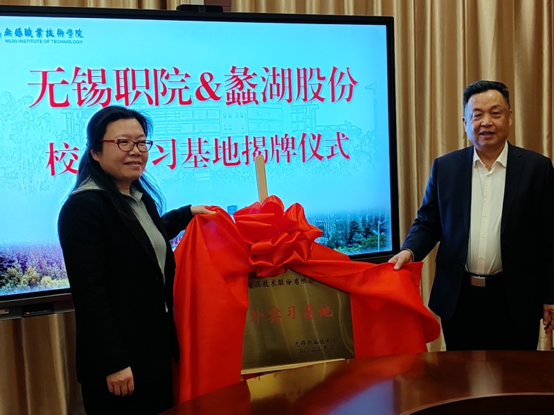 座谈会后,吴慧媛、王洪其分别代表校企双方共同签署校企共建实验室(工业大数据)框架协议,并为蠡湖股份校外实习基地揭牌。
