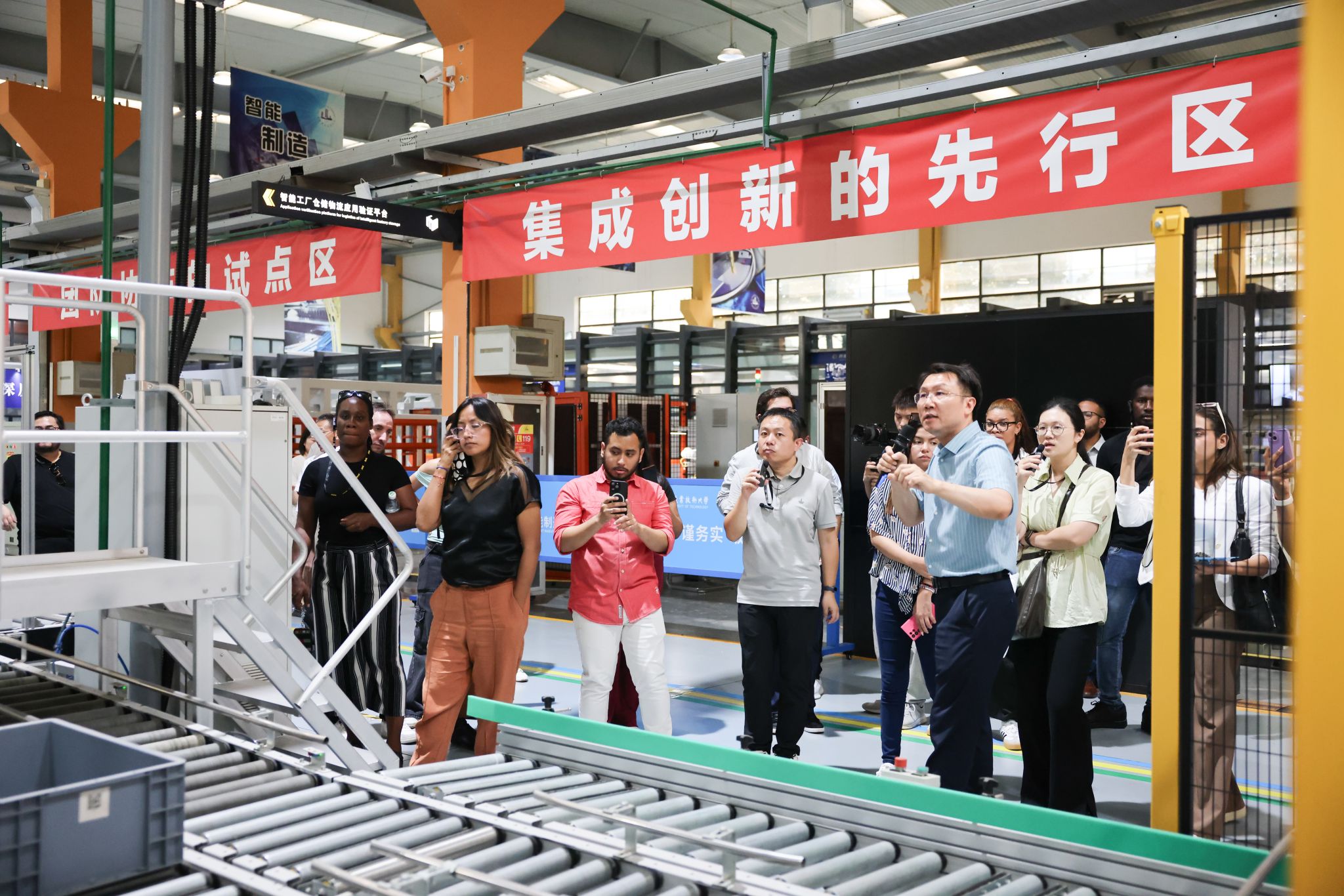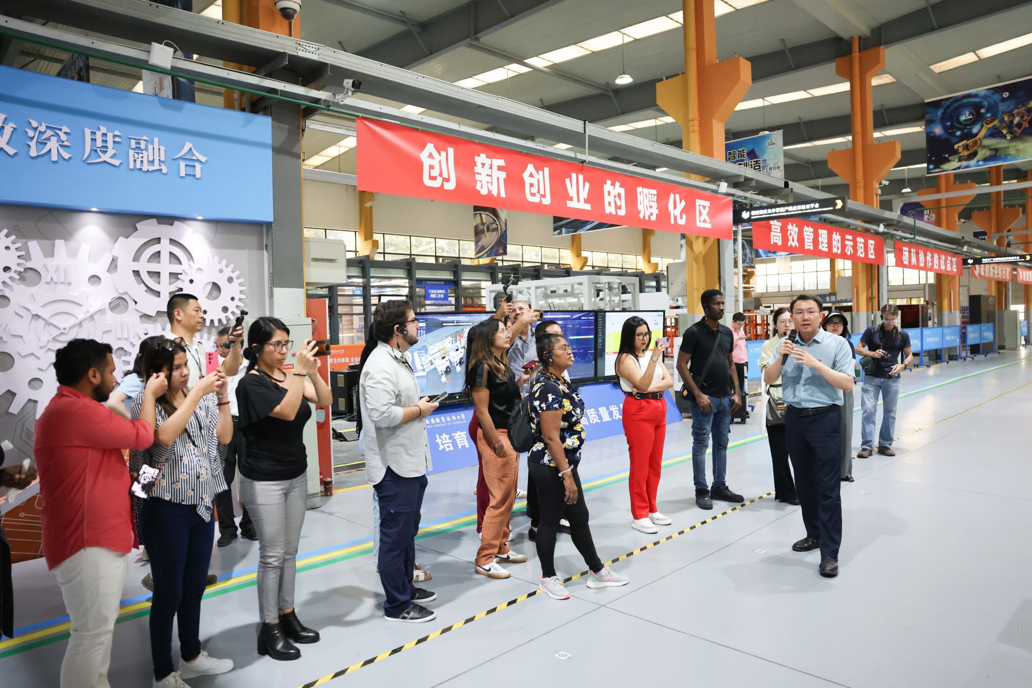 代表团先后走进设计与艺术学院、智能制造工程中心、汽车与交通工程学院,详细了解绎江南文化传承创新基地建设、彩色泥塑作品《两个江南 血脉相连》创作理念,实地观摩智能仓储物流测试验证平台、机器人竞赛与创新中心、虚拟仿真实验室运行情况,深入知晓比亚迪汽车产业学院产教融合模式。我校教师通过成果展示,生动呈现非遗文化与智能制造的创新融合,让代表团直观感受学校在文化传承与科技育人领域的特色实践。