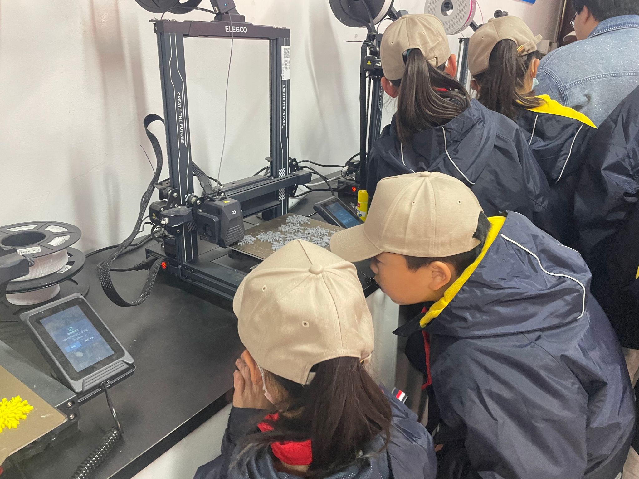 随后在中小学生职业体验中心,刘召杰老师重点带领同学们体验了3D打印、智慧农场及智慧家居模型三大特色项目。在3D打印区,大家围在设备旁认真观看模型打印全过程,部分同学还亲手操作简易打印程序,亲身感受科技创造的乐趣;在智慧农场展区,同学们通过互动装置观察智能灯光、环境监测等场景,直观了解现代农业科技的应用;在智慧家居体验区,大家动手操作模型,尝试通过智能终端控制灯光、家电等,感受科技给生活带来的便捷,在丰富的实践中拓宽了职业认知。