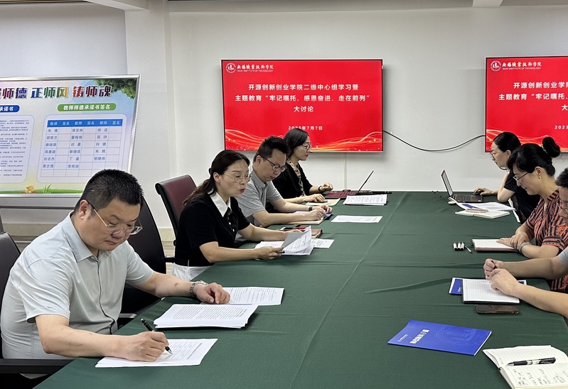 为深入开展学习贯彻习近平新时代中国特色社会主义思想主题教育,着力推动思想解放、能力提升、作风转变和工作落实,7月7日,双创学院党总支二级理论学习中心组在智能制造工程中心302会议室开展了“牢记嘱托、感恩奋进、走在前列”大讨论,党总支副书记朱倩主持会议。