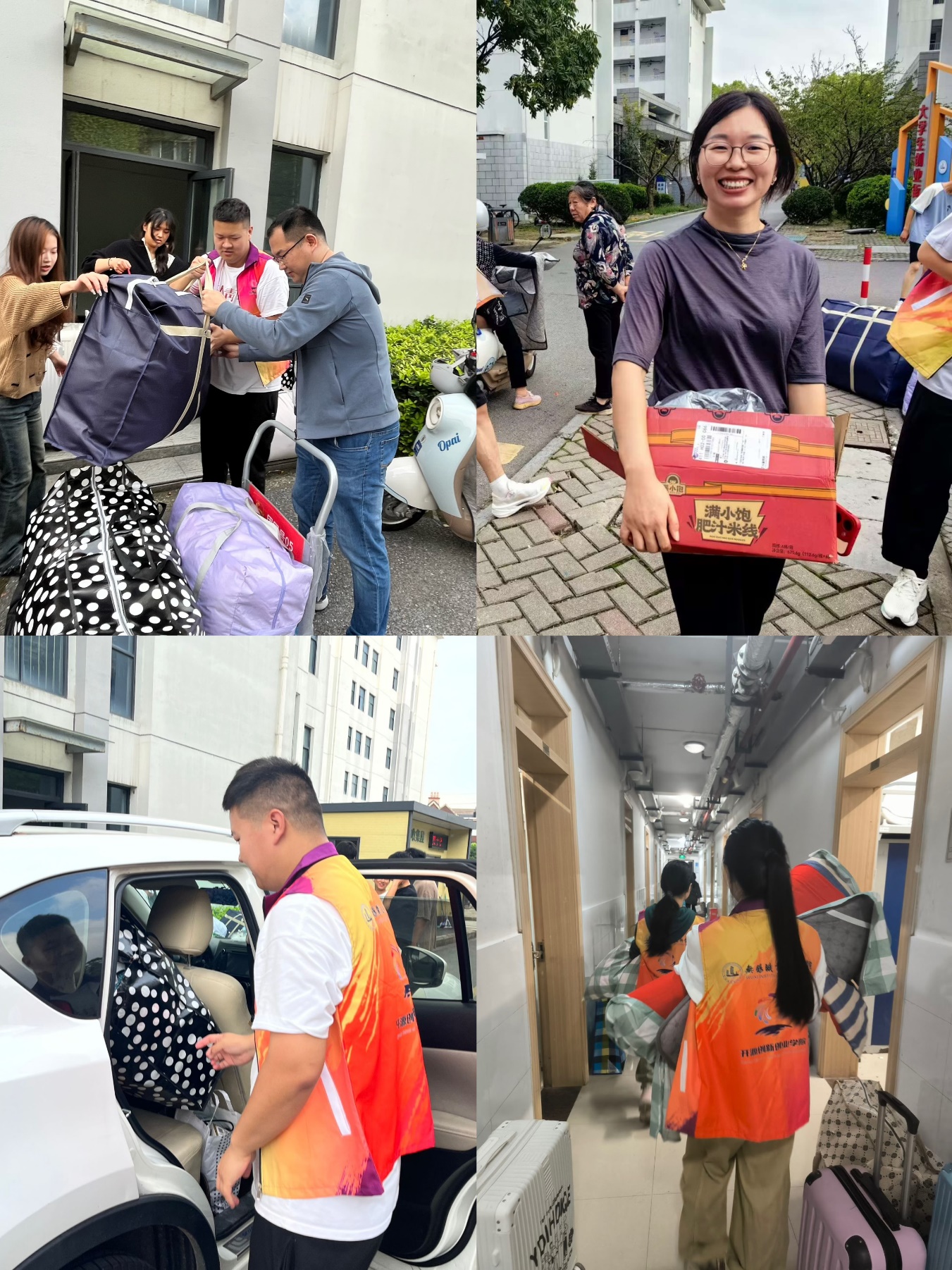 活动现场,志愿者们身着统一的服装,精神饱满地穿梭于校园与宿舍楼之间。他们耐心细致地帮助每一位女生搬运行李箱、背包等物品,并在志愿群积极对接确保每一件行李都能安全、准时地送达指定宿舍。