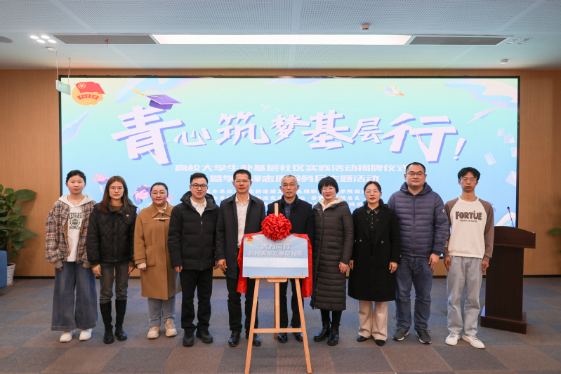 强伟纲和华庄街道党工委副书记、政协工委主任费裕其共同为项目揭牌。这是高校在无锡经济开发区所辖社区的首个实践基地,是校地合作在基层社区实践项目上迈出的新步伐。