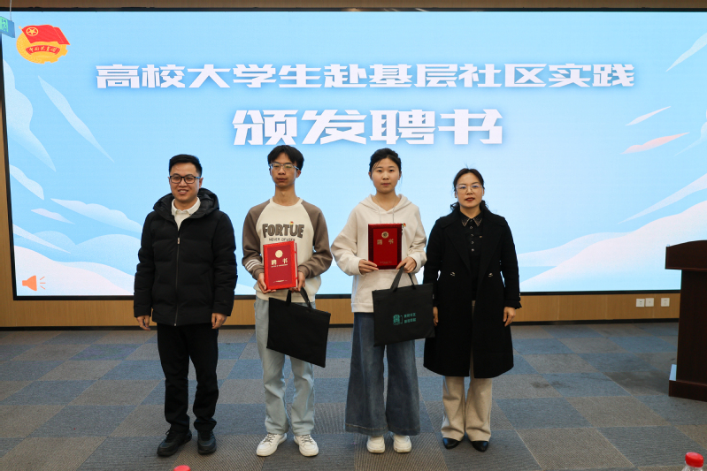 顾秋亮创新班王珂和云商创新班冉然两位同学获颁无锡经济开发区首任“社区青年干事”聘书和社区大礼包,他们将在未来一年内积极投身社区实践、服务居民。