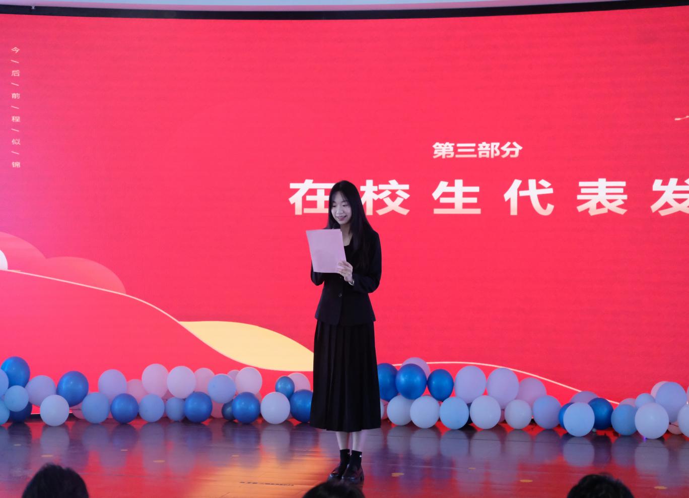 在校生代表王淑睿发言
