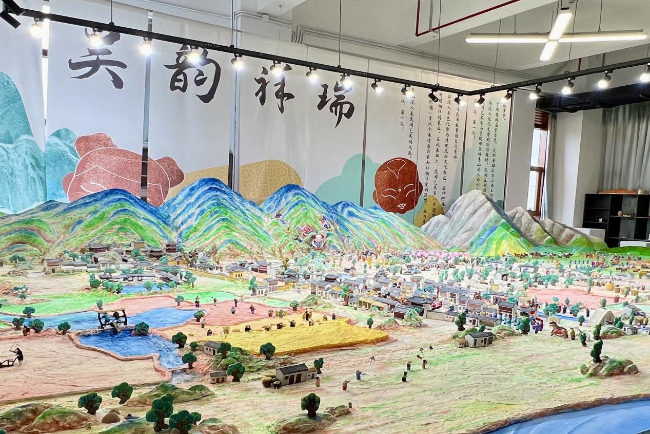 春夜喜雨洗尘心,江南美景入画卷。阿福山水话田园,吴韵祥瑞绘人间。《吴韵祥瑞图》的故事源于无锡惠山古镇,映射出地道的吴文化与阿福山水田园的和谐之美。带领我们华夏儿女一起探寻无锡乃至江南深厚的历史文脉与人文精神。而那五十六个民族的泥塑群像,更是生动地诉说着我们伟大祖国的团结与繁荣。