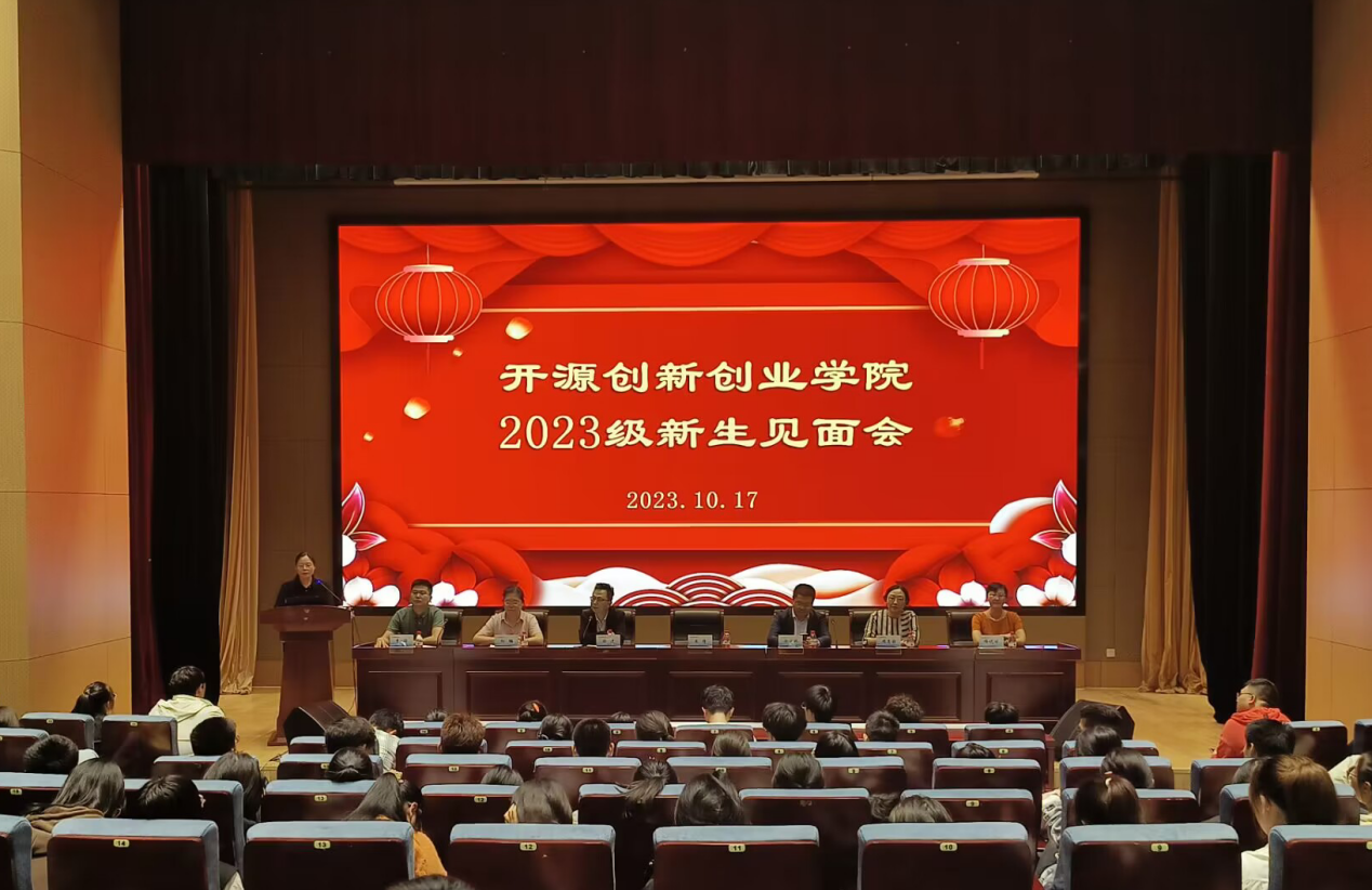 1017日,开源创新创业学院在厚德楼报告厅举办2023级新生见面会。工程中心主任、副院长徐安林,党总支副书记朱倩、徐进,各系部主任、辅导员老师等出席见面会,活动由徐进主持。