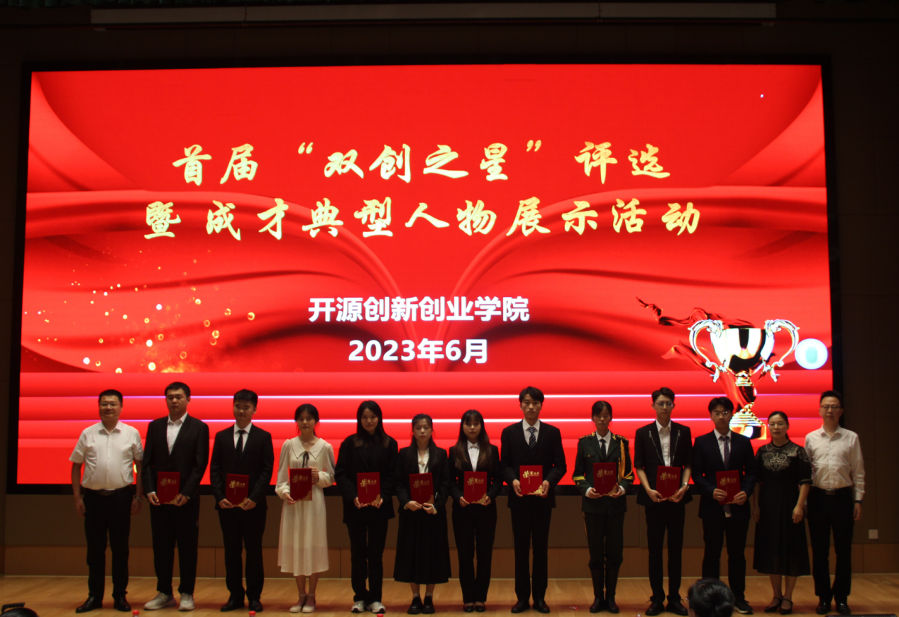网络投票评委打分观众打分三个环节的综合评比,卡尔本茨创新班21级黄嘉明等十名同学被评为开源创新创业学院首届“双创之星”;顾秋亮创新班22级焦艳红等五名同学获得“双创之星提名奖”。
