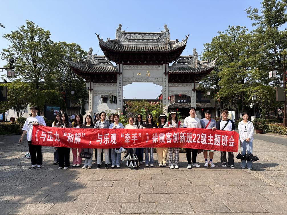 6月10日,开源创新创业学院徐霞客创新班22在无锡市荡口古镇开展了《与压力和解,与乐观牵手》心理主体班会和《读万卷书,行万里路,律动青春,勇往“职”前》职业规划和就业实践调研活动。本次活动旨在培养学生的创新创业意识与能力、团队合作精神、活动策划和语言表达能力等综合素质,同时引导学生形成正确的世界观、人生观、价值观。徐霞客22创新班全体学生、班主任于英鹏老师参加本次班会活动,活动由江宇乐、刘涛同学主持。