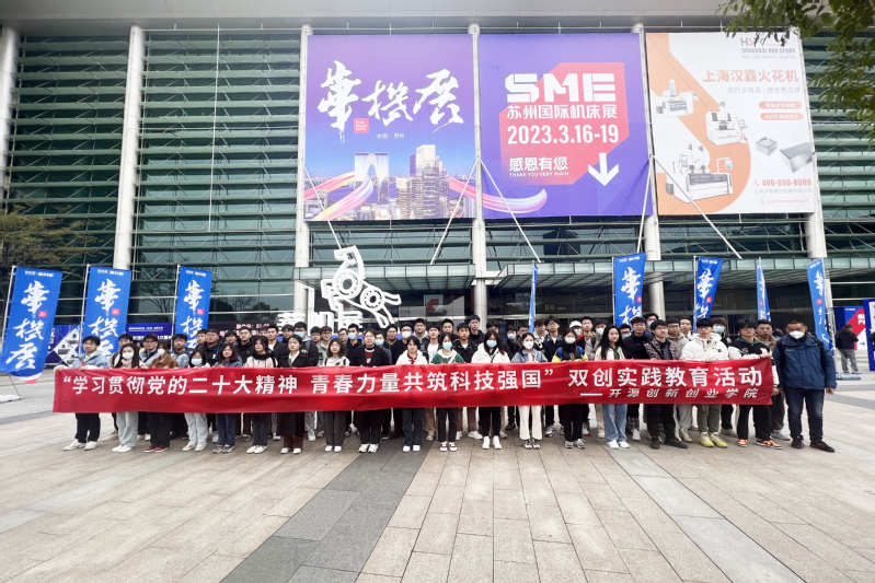 为学习贯彻党的二十大精神,践行习近平总书记在参加第十四届全国人民代表大会第一次全体会议江苏代表团全体会议时关于高水平科技自立自强、高质量发展等重要指示,进一步培养开源创新创业学院学生的宽广视野和技能报国的情怀,3月18日,学院组织80余名师生前往苏州国际博览中心,参加第五届SME苏州国际机床展。