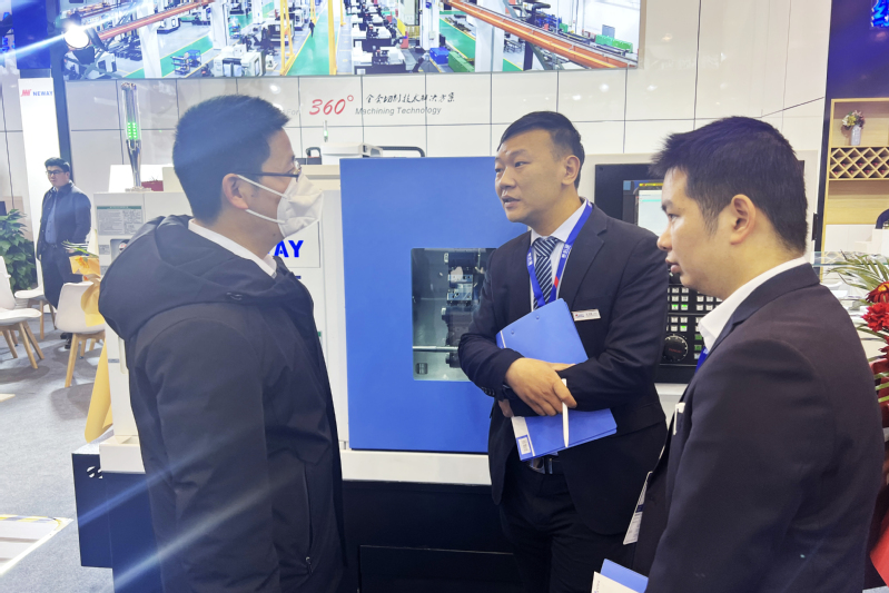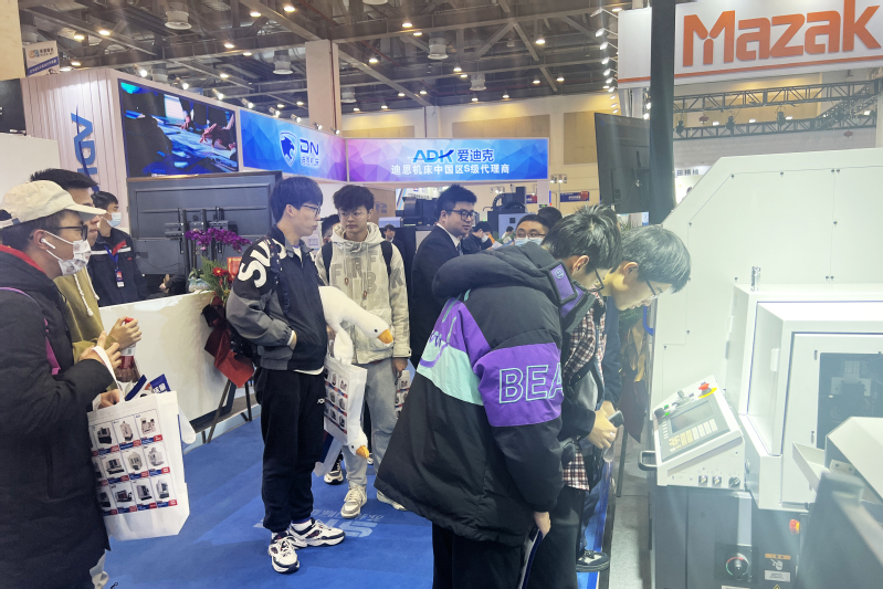 参观展会过程中,同学们能触摸到最新型号的各类智能制造装备,如数控机床、切削设备、智能机器人、非标定制产线配套机械等等,在实践中感受到了中国高端制造行业的蓬勃发展。来自顾秋亮创新班22的殷硕向工程师了解数控机床编程的应用软件,他表示虽然自己还未开始学习相关专业知识,但未来想从事编程工作。师生们积极与企业负责人开展交流,增进校企间信息互通,还了解了目前企业的用人趋势与具体要求。
