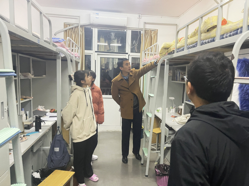 走访过程中,院领导和辅导员对学生宿舍安全、卫生、生活设施等方面逐一进行了检查并与同学们进行了深入交流,详细了解学生思想、学习、生活、安全、卫生等情况。冬天来临,院领导叮嘱大家要注意宿舍卫生、安全用电、强化安全意识,杜绝克服“网瘾”,养成良好的学习、卫生和作息习惯;鼓励同学们之间要相互理解,相互包容,注意身体健康,保持积极的心理状态,努力营造一个安全、卫生、文明、和谐的宿舍环境;希望大家把握这难得的大学时光和机遇,充分地利用有限的学习时间,增强自身的专业知识,为将来的实习和就业打下坚实的基础。