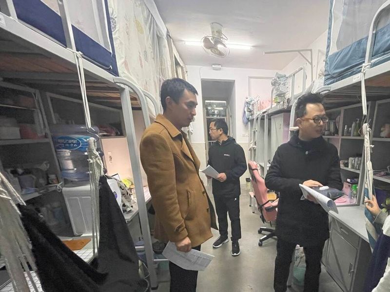 为更好促进开源创新创业学院2021级学生宿舍管理科学化、规范化,更好地开展宿舍服务工作,提升学生生活的幸福感和满意度,11月30日,学院党总支副书记曹小兵、副院长徐安林、副书记徐进带领辅导员和班主任深入学生宿舍,实地了解学生学习和生活情况,并为学生送去关心和问候。