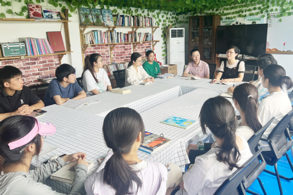活动中,双创学院师生在万家书屋深入学习了习近平关于“三农”问题与乡村振兴的重要论述,教师代表路晓丽分享了近期前往贵州麻江县开展实地调研的收获,她表示农村是一片广阔的舞台,主角应该是青年人才,只有用新思想新技术,为农业插上智慧的翅膀,才是农村产业兴旺的根本。学生代表龚胜林感触很深,他希望以自己所学的机械设计专业,切入农业智能化不足的痛点,让农业生产自动化程度更高。其他师生也都深入分享了关于利用暑期,投身乡村振兴,建设美丽乡村的好创意。