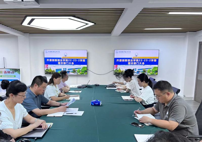 7月12日下午3点,开源创新创业学院召开22-23-2学期期末部门大会,全体教职工参会,会议由学院党总支副书记徐进主持。