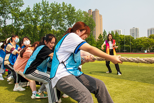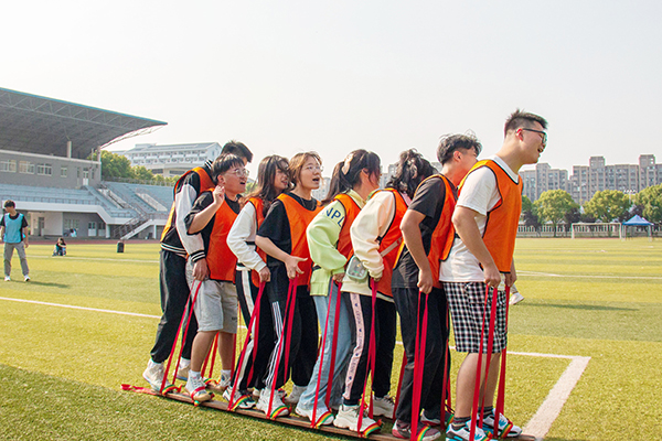同学们分为红、橙、蓝、浅蓝四队,开展了“拔河”“龙舟赛跑”“击鼓颠球”“板鞋合力跑”等趣味丰富的益智活动,不仅考验了团队之间的协作配合能力,也拉近了同学们之间心的距离。操场上回响着阵阵“加油,不放弃!”的口号声,汗水陪伴着笑颜,成为了活动场上最灿烂的阳光。祁曼老师寄语同学们,珍惜时光、积极进取,以自信、开朗的心态,面对疫情带来的诸多未知挑战。
