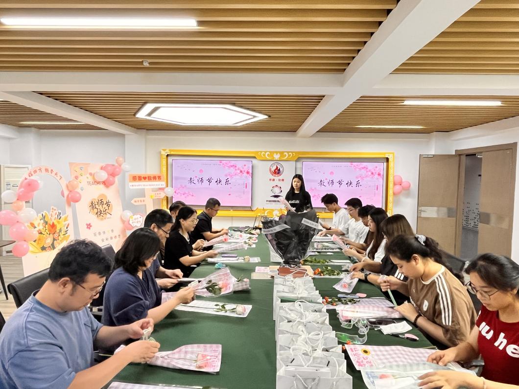 9月10日,在第41个教师节到来之际,双创学院在学院302会议室举办“盲盒传心意 桃李谢师恩”主题活动。活动以花艺创作与盲盒互赠为核心形式,在温馨融洽的互动氛围中传递真挚情感,为辛勤耕耘的教师们送上一份兼具创意与心意的节日祝福。
