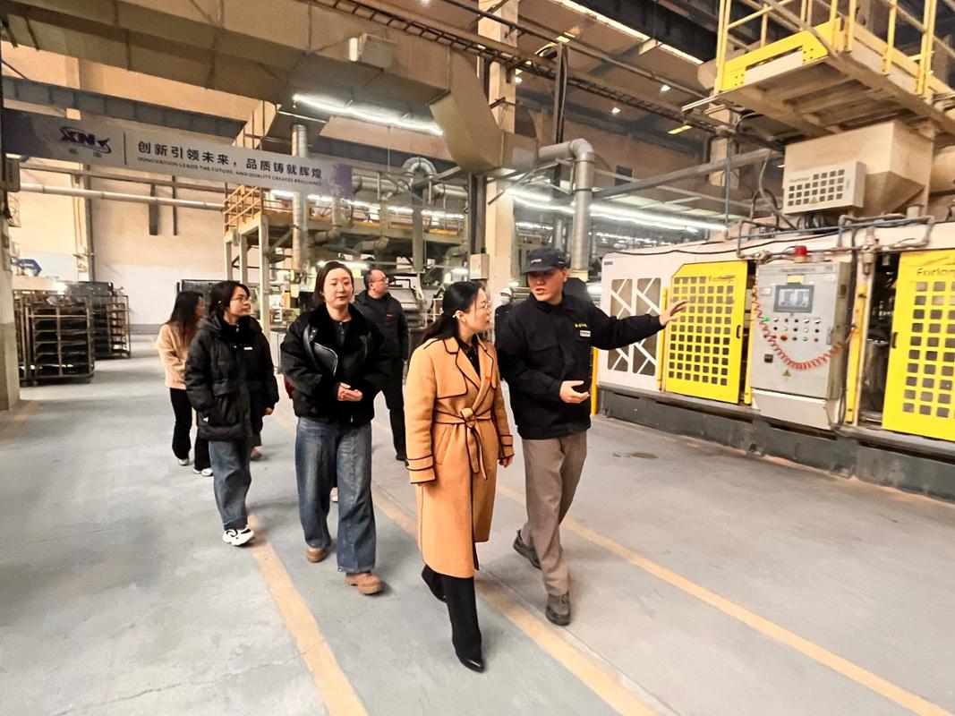 无锡锡南科技股份有限公司管理部经理盛莹莲对朱倩书记一行的到来表示热烈欢迎,并详细介绍了企业发展概况、业务布局、核心优势及人才需求情况。无锡锡南科技股份有限公司深耕汽车零部件领域多年,专注于铝合金汽车零部件研发、生产与销售,核心产品涡轮增压器压气机壳体广泛应用于全球主流汽车品牌,同时着力布局新能源汽车关键零部件领域,对机械自动化、工艺工程等专业技术人才和创新型人才有着迫切需求。